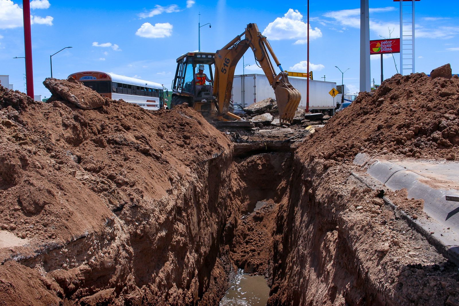 La Junta de Agua y Saneamiento de Juárez, realiza trabajos de reparación de un hundimiento sobre la Avenida López Mateos, a la altura del cruce con la avenida Óscar Flores.Cuadrillas del departamento de alcantarillado de la J+, repusieron de 18 metros de colector de 24 pulgadas, en el carril de extrema derecha con sentido de norte a sur, en una de las vialidades más transitadas de la ciudad.Para estas labores se utilizó maquinaria especializada, dos excavadoras, camiones de volteo y dos cuadrillas del organismo, que atendieron el reporte para restablecer el servicio en la red sanitaria.Los trabajos quedarán concluidos este miércoles para posteriormente dar paso al bacheo y permitir la normal circulación vehicular.La J+ en acción, reafirma su compromiso con la ciudadanía, respondiendo de manera oportuna a los reportes para el buen funcionamiento de la infraestructura sanitaria de la ciudad.