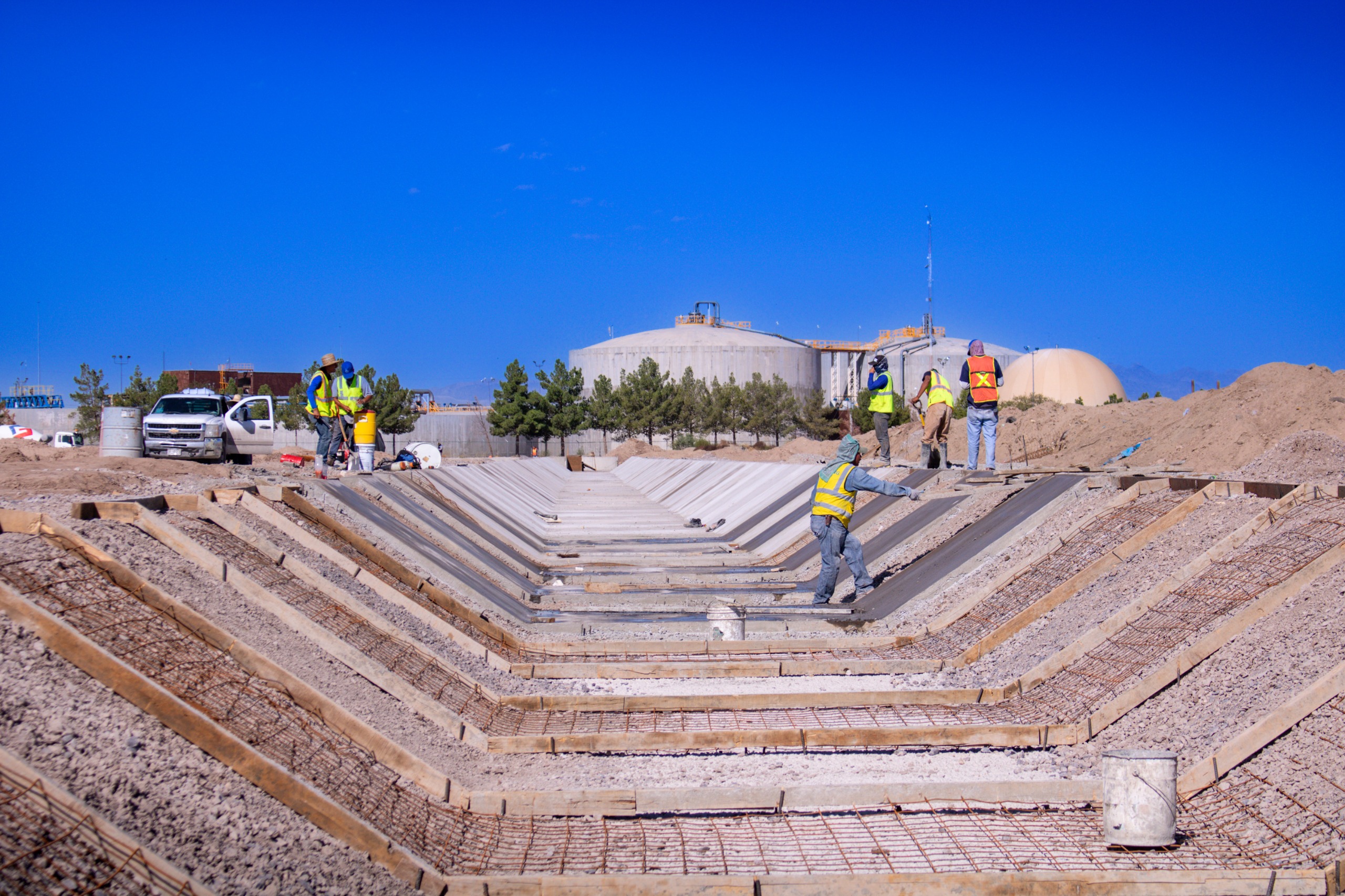 Sacará el líquido del canal que atraviesa las 9 etapas para mejorar su aprovechamiento y la calidad de vida de los vecinosLa J+ está trabajando en la construcción de un canal de mil 200 metros de longitud en su planta tratadora sur para evitar escurrimientos, mejorar el aprovechamiento del agua tratada y eliminar los malos olores en zonas residenciales de Riberas del Bravo, al desviar el cuerpo de agua del cauce actual que cruza todo el fraccionamiento.Omar Villegas, coordinador de residentes de la J+, explicó que actualmente el agua tratada que sale de la planta no cuenta con un conducto que permita su óptima llegada al dren que conduce el líquido a su destino final, por lo que el agua corre expuesta por todo Riberas, donde existen riesgos sanitarios y de filtraciones.“El antiguo canal en algunas zonas no está confinado, es decir, no tiene concreto en algunas zonas, entonces, mucha parte de ese recurso hídrico se pierde y con este canal que ya estamos instalando con concreto, las aguas son destinadas de mejor manera a su punto final y con este proyecto se van a beneficiar un total de 112 mil habitantes, con una inversión de 49 millones de pesos”, detalló Villegas.La nueva infraestructura incluye tres diseños estructurales diferentes, dos de ellos son abiertos, por lo que se puede ver correr el agua, sin embargo, en las zonas donde hay viviendas cerca, el canal es cerrado, por lo que eliminará la problemática de malos olores y riesgo de caer al cuerpo de agua, al estar completamente cerrado.Sacar de Riberas del Bravo el flujo de agua tratada fue un compromiso hecho por la gobernadora Maru Campos con los vecinos de aquel sector, los cuales expusieron la problemática la cual ya es atendida por la Junta de Agua y Saneamiento de Juárez con esta inversión de casi 50 millones de pesos.