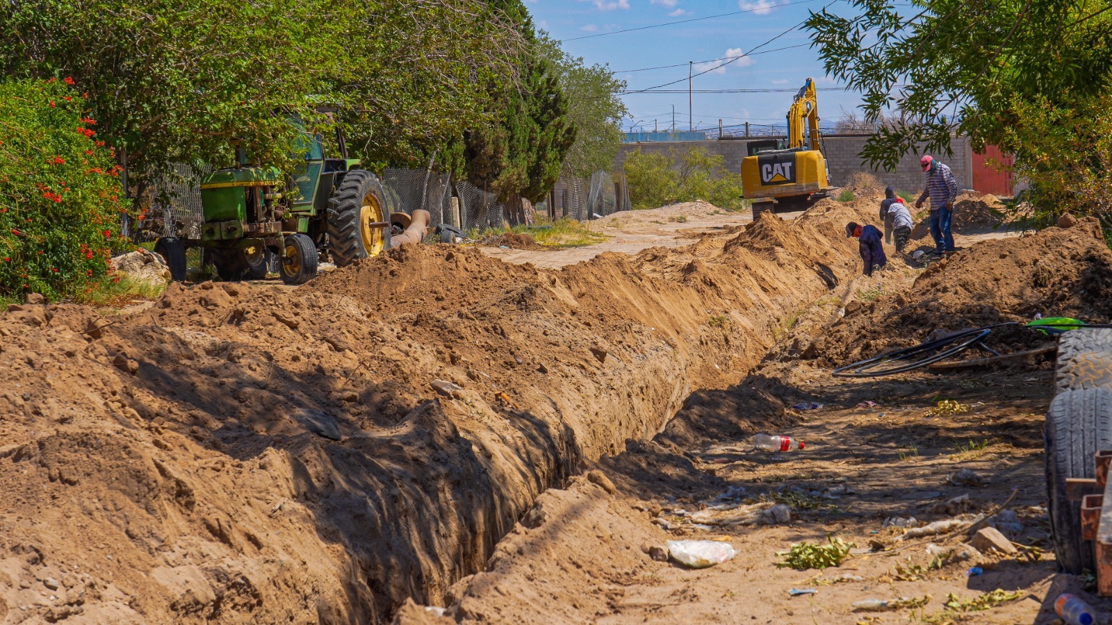 -Por primera vez habrá agua potable en El Sauzal Luego de varias décadas sin el servicio de agua en el ejido El Sauzal, en el Valle de Juárez, la Junta de Agua y Saneamiento ha iniciado una obra histórica para introducir la red de agua potable en la zona y así mejorar en la primera etapa la calidad de vida de 3 mil 200 personas que viven en ese sector.Con dos frentes de trabajo, la J+ ha iniciado la construcción de la primera etapa de la red de agua potable, en la cual se introducirán más de 18 mil 500 metros de tubería de tres, seis y ocho pulgadas, además de la instalación 813 tomas domiciliarias, 32 válvulas y 9 hidrantes.Para dimensionar la problemática con la que viven en esta zona, es necesario escuchar los comentarios de quienes residen ahí, como es el caso de la señora Virginia Limón, quien llegó a vivir a El Sauzal hace 26 años y siempre ha batallado para tener agua en su casa, ya que pagó por un servicio que no hay y ahora tiene que comprar el agua en pipas.“Imagínese, tengo que estar acarreando de aquí para estar metiendo para bajarle al baño, para bañarme, para lavar, para todo tener que estar acarreando en botes. La cadera duele es bien difícil la mera verdad, los solazos, andar agarrando agua, acarreando el agua para adentro, primero para esperar la pipa, que llegue, hay veces que no hay, nos quedamos hasta dos o tres días sin agua, hasta que no vuelven a pasar otras pipas”, platicó Virginia.Uno de los frentes de trabajo de esta gran obra avanza desde la calle Lázaro Cárdenas y Juárez-Porvenir hacia el oeste, mientras que el segundo de las calles Totiquihuatzin y Pochotl hacia el sureste con la introducción de la nueva tubería.Luis Felipe Pérez, jefe de la Zona Frontera de la Junta Central de Agua y Saneamiento del Estado de Chihuahua y quien está a cargo del proyecto, explicó que este se dividirá en tres etapas, la que ya se encuentra en curso es en un cuadrante que se encuentra entre la carretera Juárez-Porvenir, la calle Puerto Dunquerque, la calle Lázaro Cárdenas y la calle Salvárcar.“Este proyecto es importante para la comunidad de El Sauzal, durante muchos años se ha batallado con el tema del agua y este proyecto arrancamos la primera etapa de tres etapas, donde vamos a conectar la comunidad de El Sauzal a un pozo ya de la Junta Municipal de Agua y Saneamiento y la idea es que, tiene muchos beneficios, verdad, la comunidad se beneficia de tener agua las 24 horas, se van a beneficiar de tener una red de agua potable nueva, les vamos a dejar en su predio, en la banqueta, una toma para que se puedan conectar muy fácilmente”, explicó Luis Felipe.Teresa Hernández es otra vecina del sector, ella explicó que, para tener agua en su casa, su esposo va en su camioneta a conseguirla, pero debido a que tiene que trabajar todo el día, no han tenido tiempo para rellenar sus contenedores y no tienen los recursos para comprar el agua que se vende en pipas, por lo que al escuchar la noticia de que ya tendrán el servicio en su colonia, sintió alivio.“Ha sido una lucha durante 25 años, lucha que no se imagina usted. Es triste, es muy triste, 25 años estar aquí y batallando con el agua. Esperamos que ya, la junta en la que fuimos, hasta el corazón me palpitaba, escuchar a la señorita que decía que iban a perforar dos pozos, que ya lo que el señor dijo de los contratos ya no me interesó porque dije: hago un nuevo contrato, pero yo ya sé que voy a abrir la llave y ahí va estar el agua”, dijo Teresa.Con el desarrollo de este proyecto, la J+ refrenda el compromiso que tiene con la comunidad al trabajar en el mejoramiento e implementación de infraestructura nueva, para garantizar el servicio de agua potable.