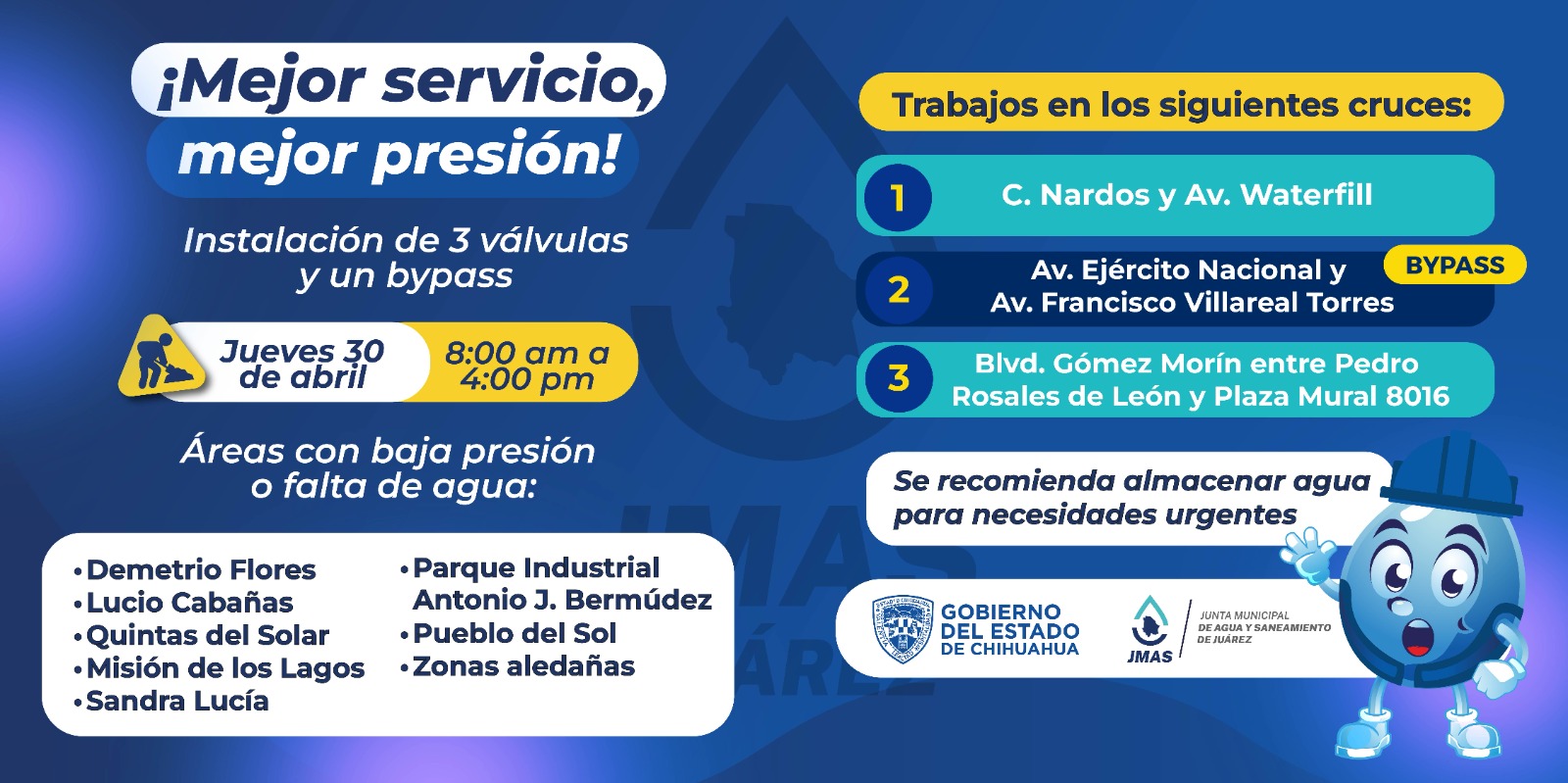 Como parte de los trabajos de reposición del Colector Nadadores, la Junta de Agua y Saneamiento de Juárez, realizará una conexión a la red de agua potable en la colonia…